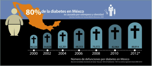 – En 2012, México ocupó el sexto lugar mundial en muertes por diabetes y el tercer lugar en el continente americano.